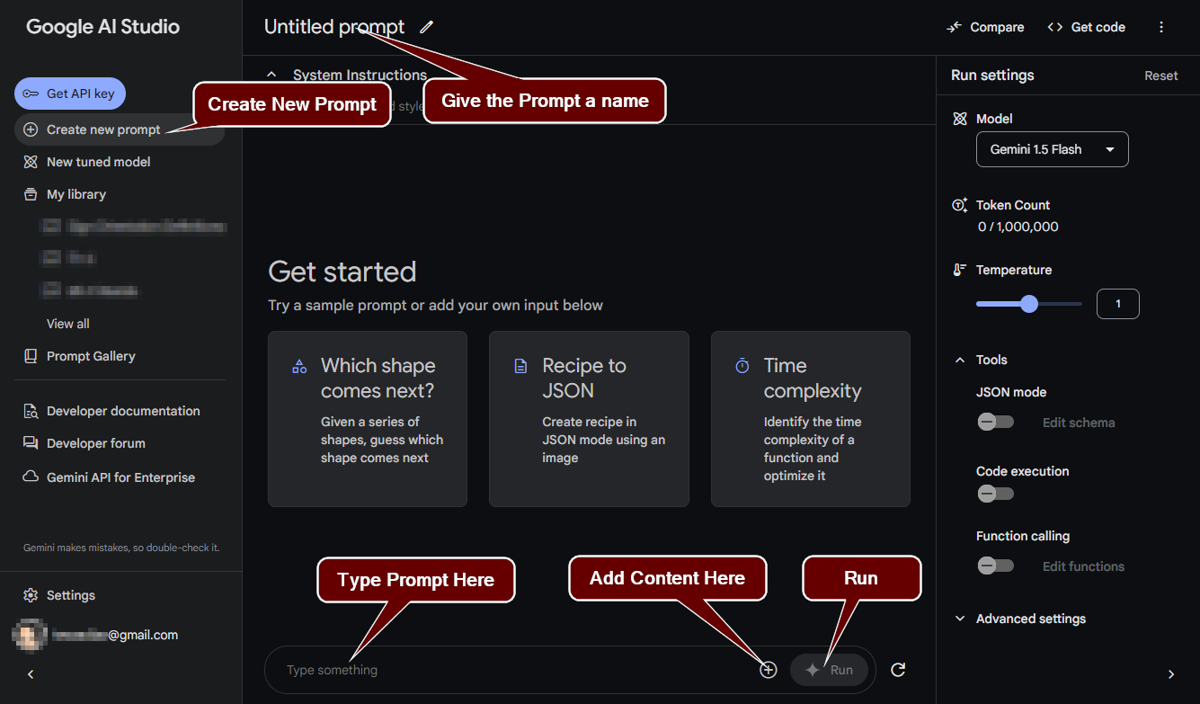 Creating a prompt in Google AI Studio