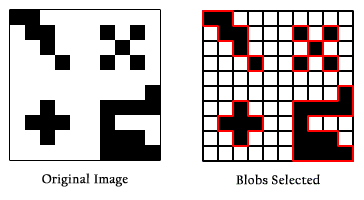 Forming a Blob is done automatically by the software. It seeks pixels of similar color that are contiguous – touching each other along an edge, not just at a corner.