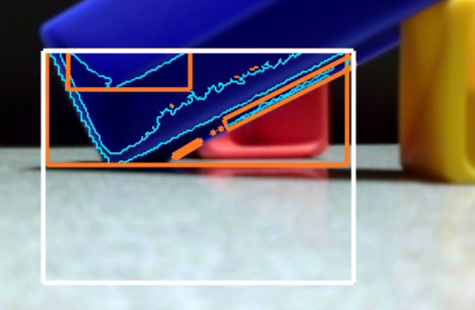 Here the software was told to seek shades of blue. The orange rectangle encloses a Blob of blue color.