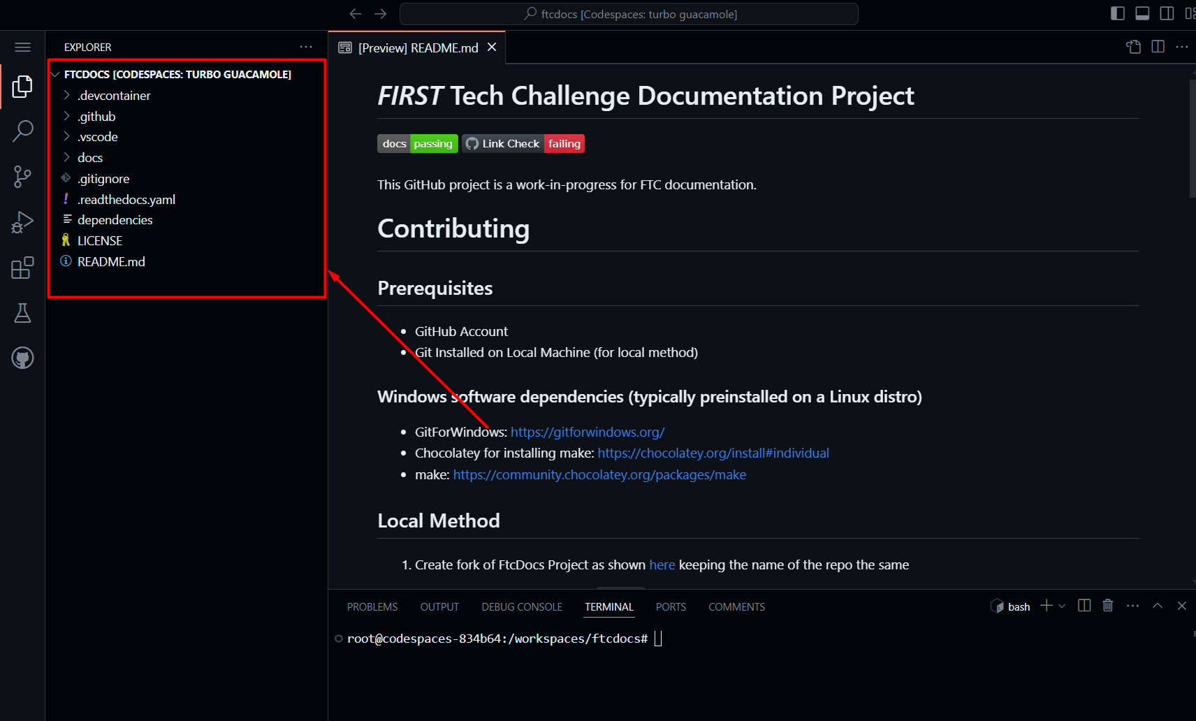 The ftcdocs repository is a “map” of the files and how they’ll be presented to users on the website. Filenames and where they’re located in the folder structure of the repository define the ultimate web experience users will have interacting with your final documentation.