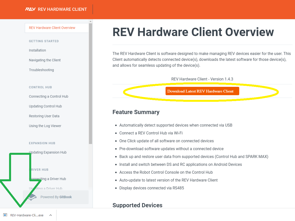Downloading REV Hardware Client