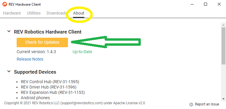 REV Hardware Client Available Updates