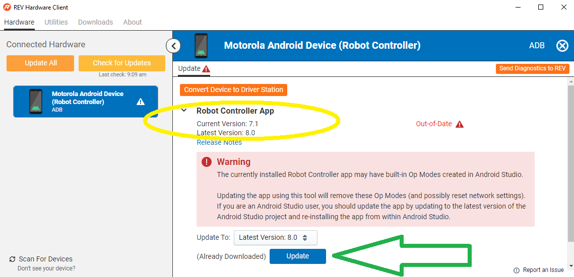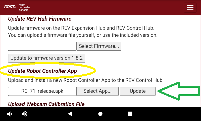 Other descriptions of updating the RC app are at REV Robotics’ excellent documentation site.